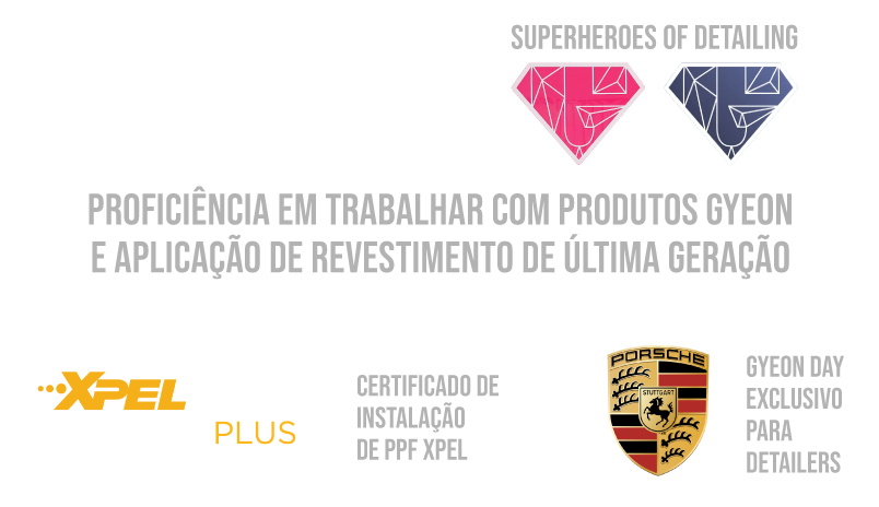 Somos Certified Detailer pela GYEON, uma das marcas mais respeitadas no mundo da estética automotiva. Isso garante que seguimos padrões internacionais de qualidade e utilizamos produtos reconhecidos globalmente por sua durabilidade, resistência e inovação tecnológica.